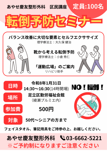 今回、『 転倒予防 』をテーマとした区民講座を開催します。